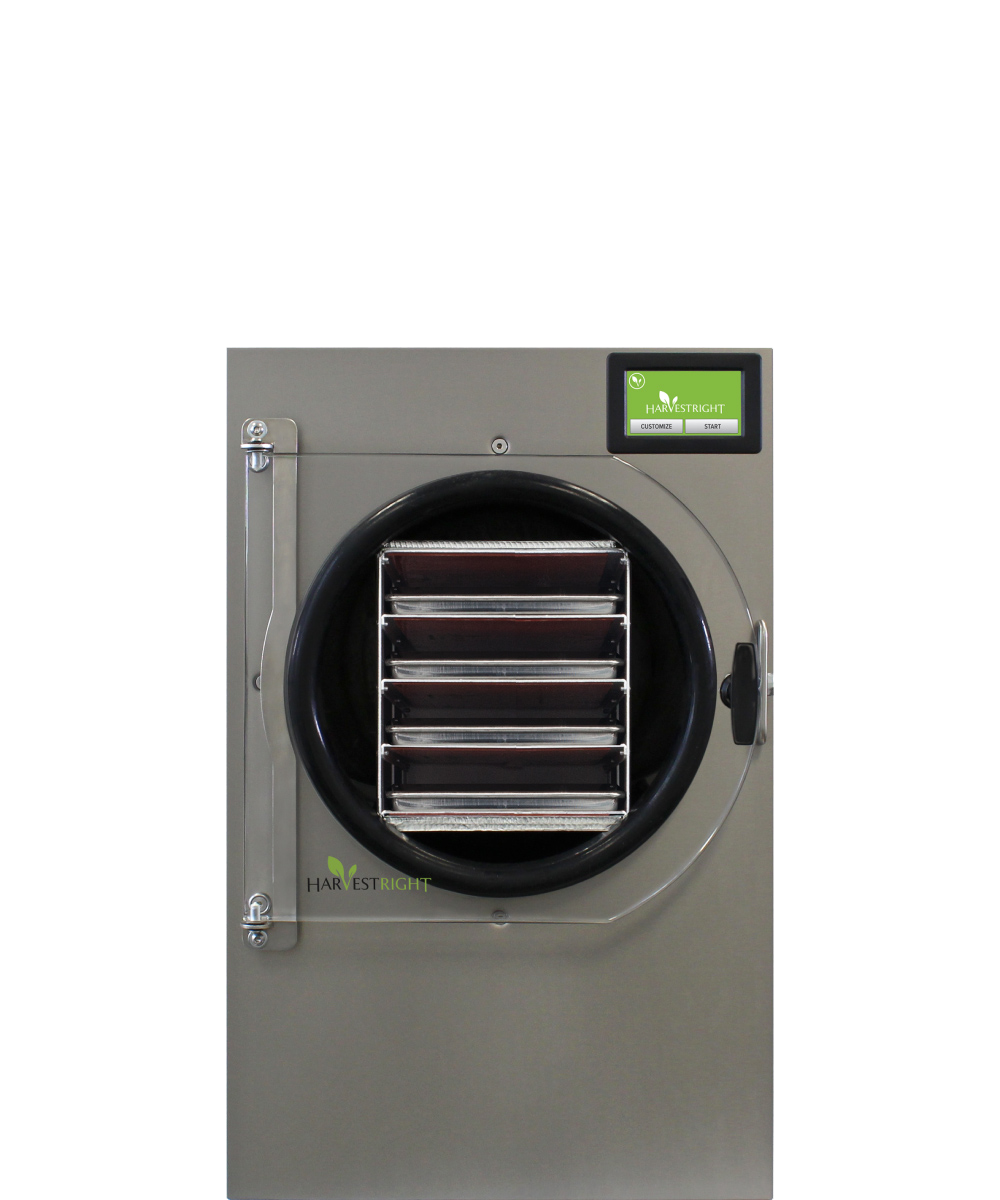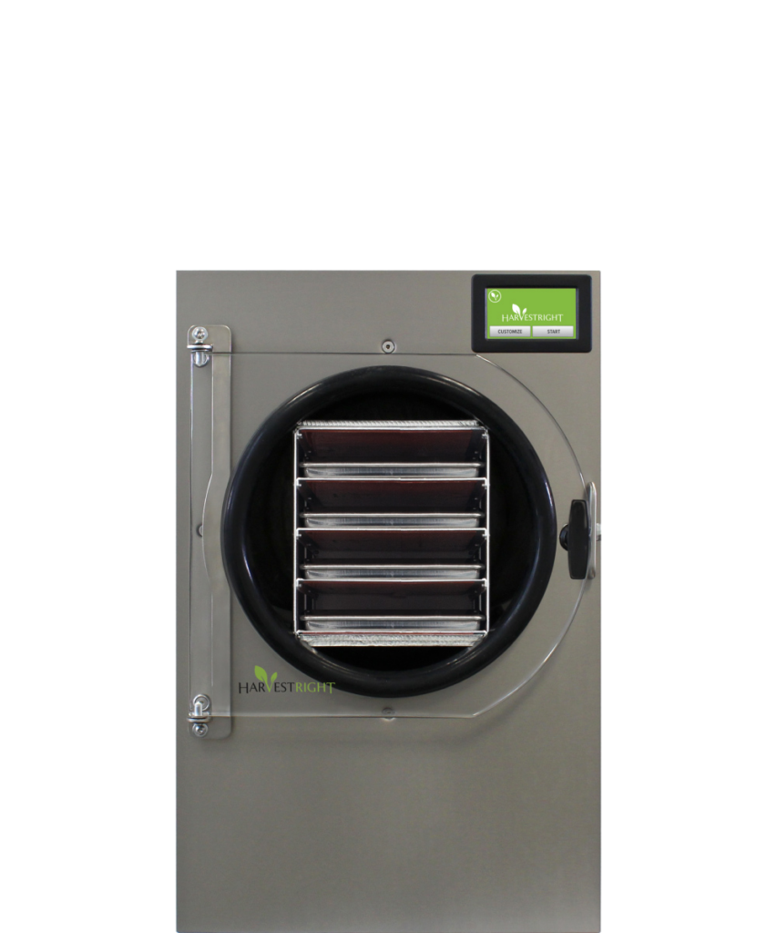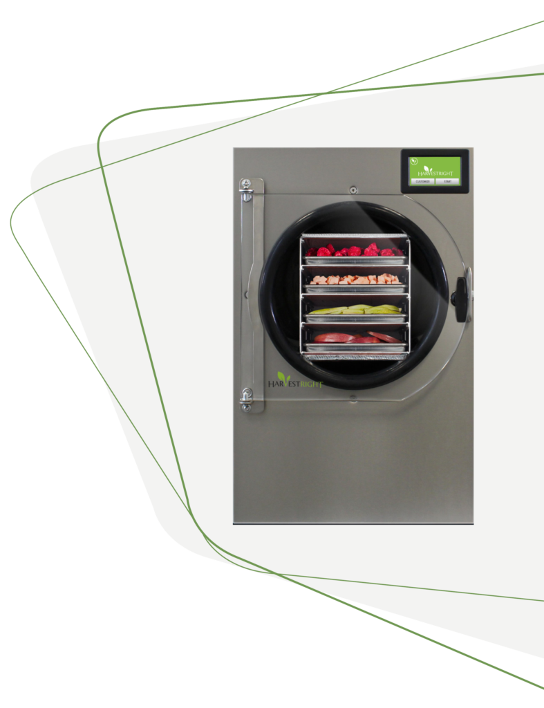 Frische oder gekochte Lebensmittel werden in den Gefriertrockner gegeben und auf ca. -20° C eingefroren.
